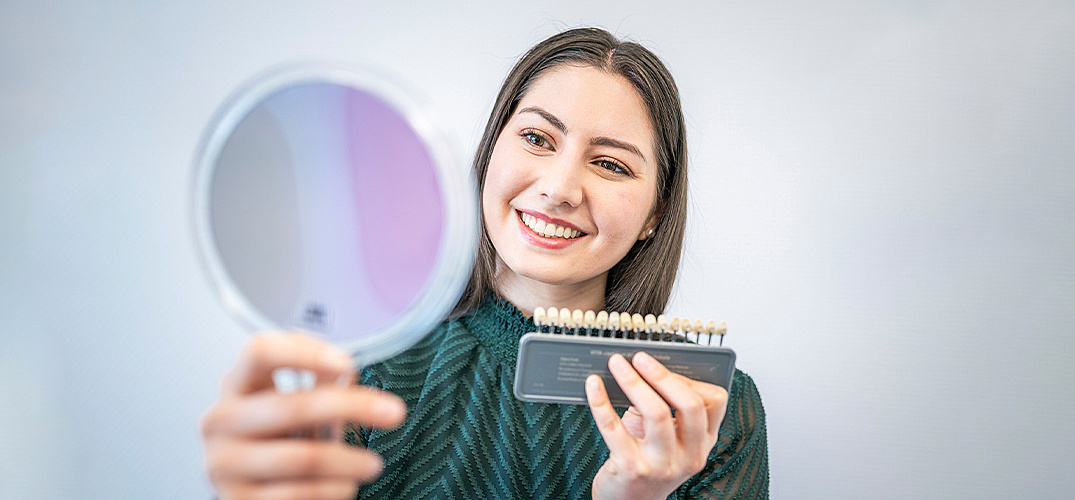 - Beratung für den gewünschten Zahnaufhellungseffekt mit Klärung der Ursachen für Zahnverfärbungen und dem passenden Umgang mit Zahnfüllungen, Kronen und Brücken.
